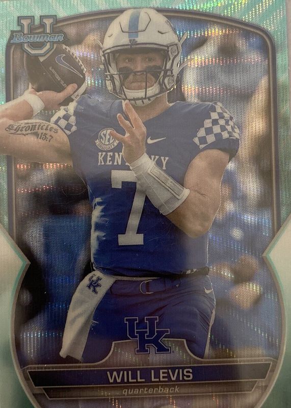 2022 Bowman University Chrome Will Levis Aqua Wave Refractor /299 #5 Kentucky