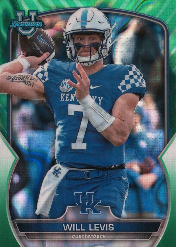 Will Levis 2022 Bowman Chrome University #5 Prospects - Green Lava Refractor /99 RAW Price Guide