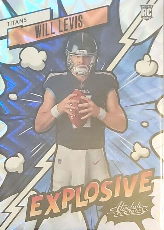 The Will Levis 2023 Absolute #39 Explosive /(SSP) Rookie card in Raw condition has not changed in price in the last 30 days and was last sold for $3.00 .
