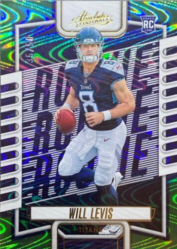 The Will Levis 2023 Absolute #114 Green Waves /50 Rookie card in Raw condition has not changed in price in the last 30 days and was last sold for $9.99 .