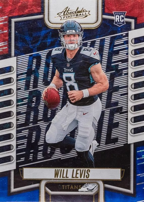 The Will Levis 2023 Absolute #114 Red White Blue Kaleidoscope Rookie card in Raw condition has not changed in price in the last 30 days and was last sold for $4.22 .