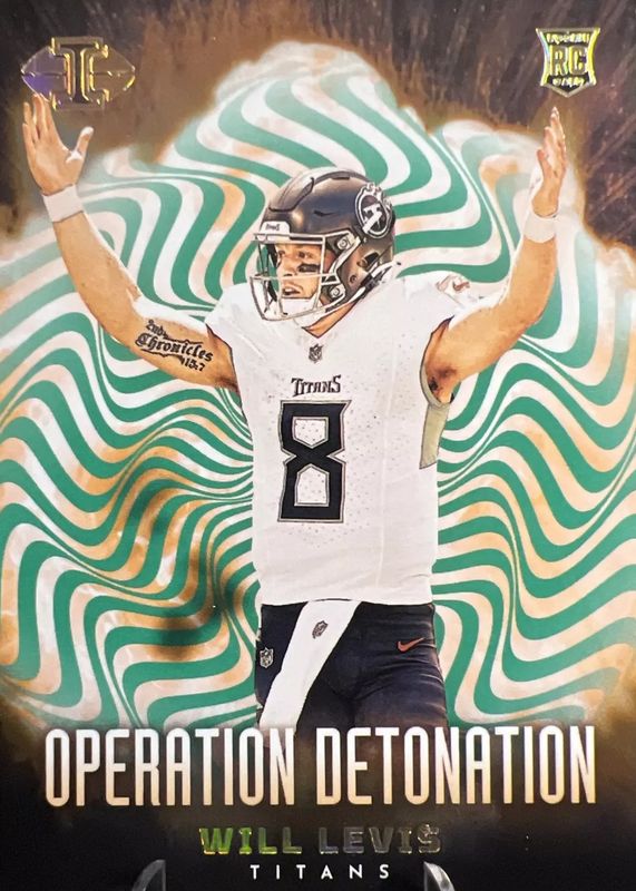 The Will Levis 2023 Illusions #24 Operation Detonation - Green /10 Rookie card in Raw condition has not changed in price in the last 30 days and was last sold for $27.26 .