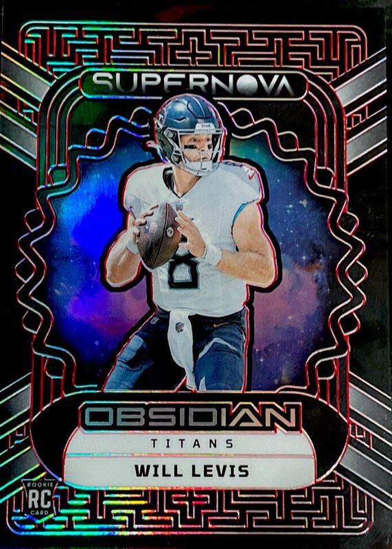 The Will Levis 2023 Obsidian #4 Supernova - Electric Etch Red /10 Rookie card in Raw condition has not changed in price in the last 30 days and was last sold for $190.00 .