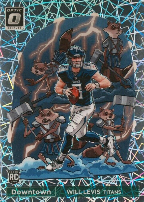 The Will Levis 2023 Optic #D-14 Downtown /(SSP) Rookie card in Raw condition has moved up $10.00 (+7.1%) in the last 30 days and was last sold for $150.00 .