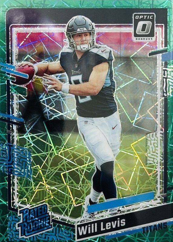 The Will Levis 2023 Optic #298 Green Velocity Rookie card in Raw condition has moved up $2.16 (+103%) in the last 30 days and was last sold for $4.25 .