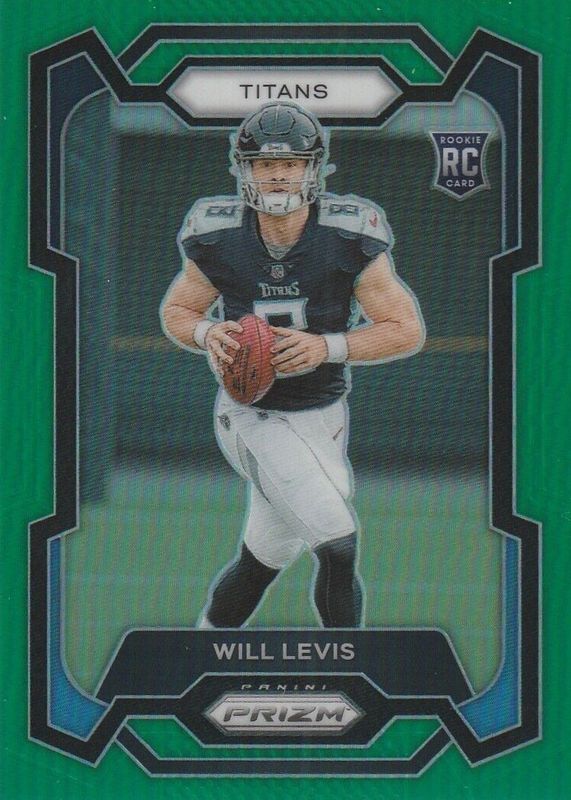 The Will Levis 2023 Prizm #397 Green Rookie card in Raw condition has moved up $14.06 (+1,182%) in the last 30 days and was last sold for $15.25 .