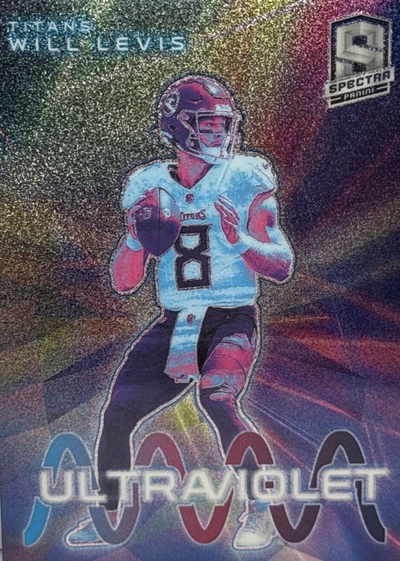 The Will Levis 2023 Spectra #UV-WL Ultraviolet /(SSP) Rookie card in Raw condition has not changed in price in the last 30 days and was last sold for $16.53 .