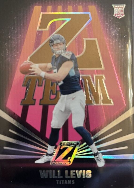 The Will Levis 2023 Zenith #24 Z-Team - Copper /50 Rookie card in Raw condition has not changed in price in the last 30 days and was last sold for $8.99 .