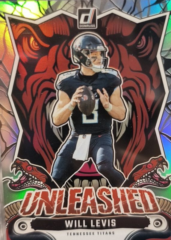 This card is 1 of 3 Will Levis' card variations in the 2024 Donruss set being tracked by Sports Card Investor, including Unleashed - Gold /10, and Unleashed - Black /1.