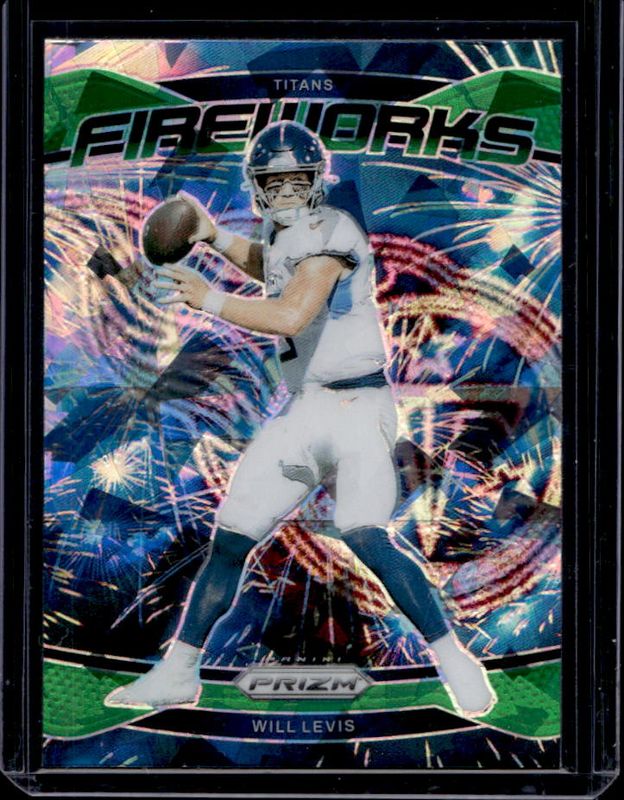 The Will Levis 2024 Prizm #4 Fireworks - Green Ice card is 1 of 95 Will Levis' card variations in the 2024 Prizm set being tracked by Sports Card Investor, including Base, Choice Blue Yellow Green, Choice Silver, Disco, and Green.