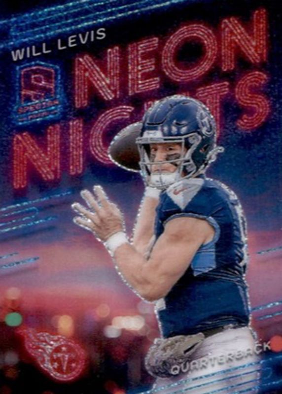 The Will Levis 2024 Spectra #NN-WLS Neon Nights /(SSP) card in Raw condition has not changed in price in the last 30 days and was last sold for $17.00 .