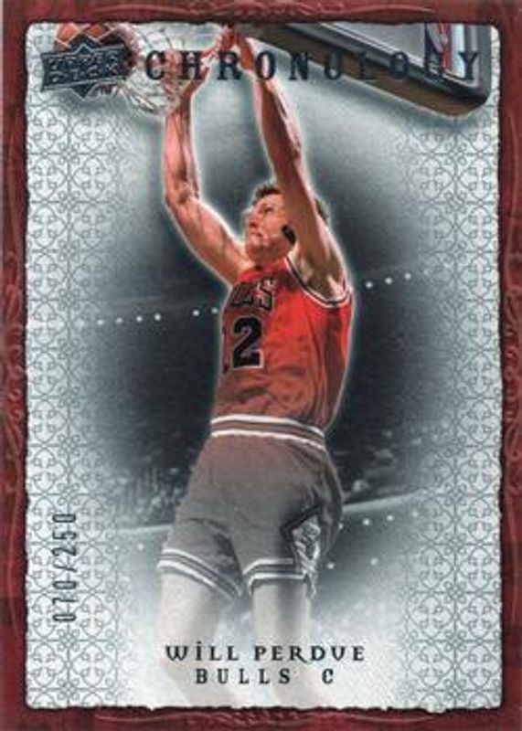 The Will Perdue 2007 Upper Deck Chronology #96 Base /250 card is 1 of 3 Will Perdue's card variations in the 2007 Upper Deck Chronology set being tracked by Sports Card Investor, including Autographs, and Autographs Gold /10.