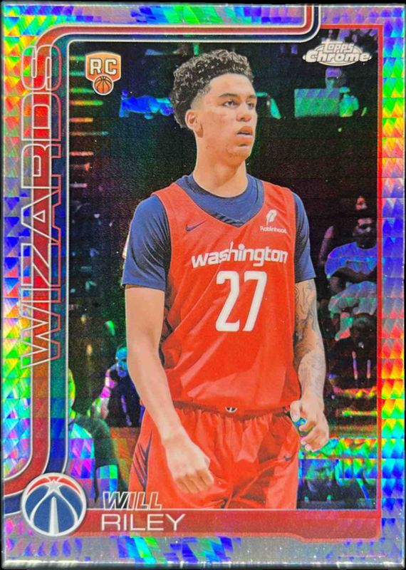 The Will Riley 2025 Topps Chrome #271 Prism Refractor Rookie card is 1 of 209 Will Riley's card variations in the 2025 Topps Chrome set being tracked by Sports Card Investor, including Base, Basketball Refractor, Box Set Refractor, Image Variation, and Lightboard Logo Refractor.