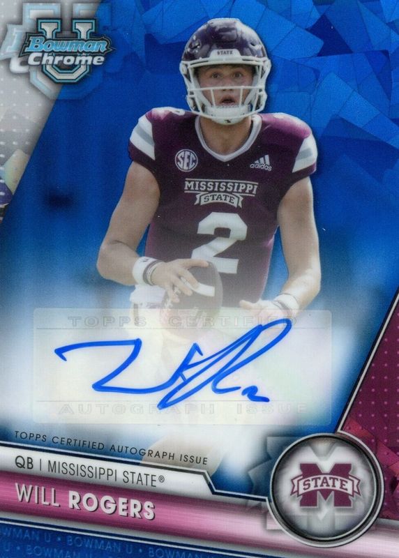 Will Rogers 2023 Bowman Chrome University Sapphire Blue Autograph