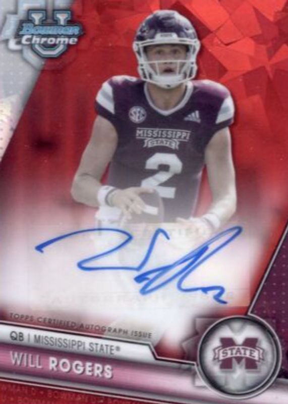 Auctions Ending Soon for Will Rogers 2023 Bowman Chrome University Sapphire Edition #PA-ROG Prospect Auto - Red /5 RAW
