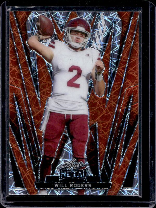 The Will Rogers 2024 Leaf Metal #106 Laser Orange /1 card is 1 of 209 Will Rogers' card variations in the 2024 Leaf Metal set being tracked by Sports Card Investor, including Autographs Pulsar Sky Pre Production Proofs, Prismatic Silver, Mojo Silver /10, Pulsar Silver /10, and Crystal Silver /8.