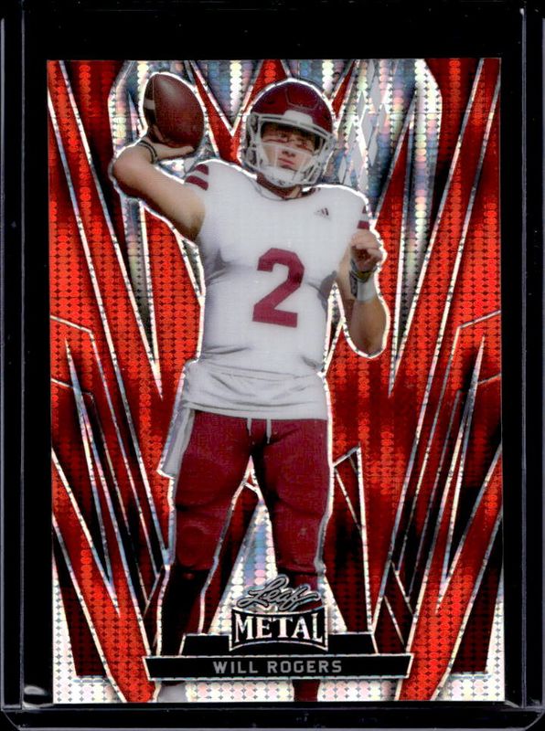 The Will Rogers 2024 Leaf Metal #106 Pulsar Red /3 card is 1 of 209 Will Rogers' card variations in the 2024 Leaf Metal set being tracked by Sports Card Investor, including Autographs Pulsar Sky Pre Production Proofs, Prismatic Silver, Mojo Silver /10, Pulsar Silver /10, and Crystal Silver /8.