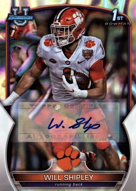 2022 Bowman University Chrome 1st Auto Lava Refractor Will Shipley /199 Clemson
