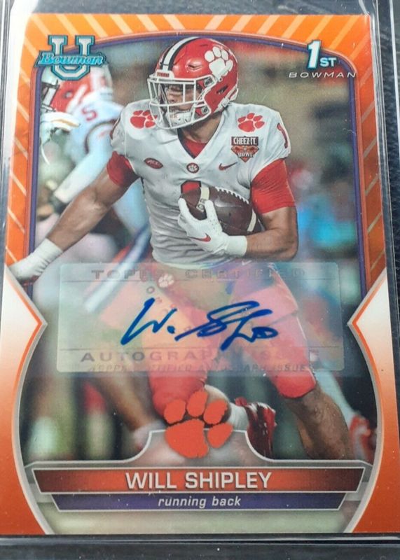 WILL SHIPLEY 2022 Bowman Chrome University ORANGE REFRACTOR AUTO 25/25 CLEMSON