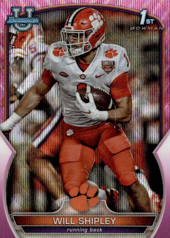 This card is 1 of 41 Will Shipley's card variations in the 2022 Bowman Chrome University set being tracked by Sports Card Investor, including Prospects (1st), Prospects - Pink Refractor (1st), Prospects - Purple Shimmer Refractor (1st), Prospects - Refractor (1st), and Prospects - Purple Mini-Diamond Refractor /399 (1st).