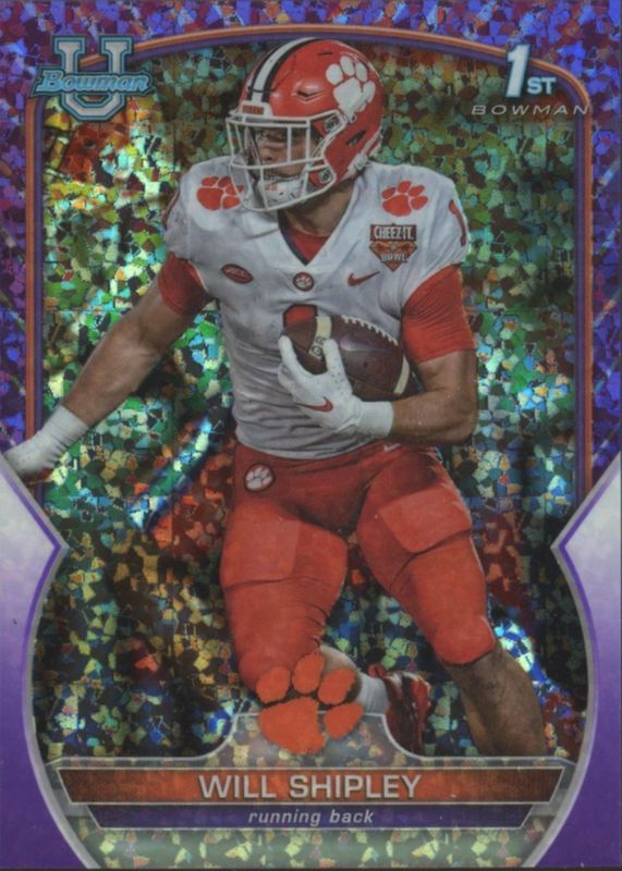 This card is 1 of 41 Will Shipley's card variations in the 2022 Bowman Chrome University set being tracked by Sports Card Investor, including Prospects (1st), Prospects - Pink Refractor (1st), Prospects - Purple Shimmer Refractor (1st), Prospects - Refractor (1st), and Prospects - Purple Refractor /399 (1st).