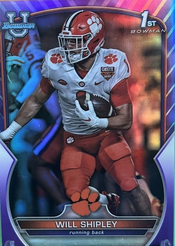 This card is 1 of 41 Will Shipley's card variations in the 2022 Bowman Chrome University set being tracked by Sports Card Investor, including Prospects (1st), Prospects - Pink Refractor (1st), Prospects - Purple Shimmer Refractor (1st), Prospects - Refractor (1st), and Prospects - Purple Mini-Diamond Refractor /399 (1st).