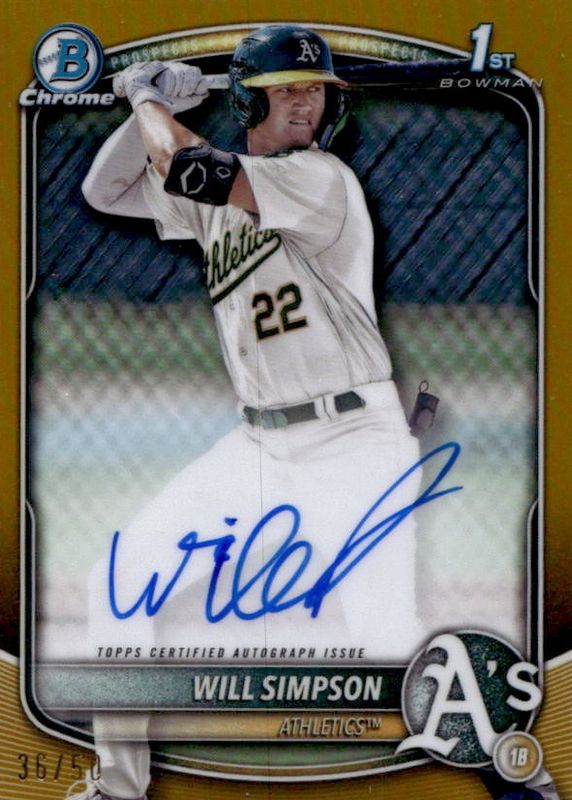 2025 Bowman Chrome 1st Auto Will Simpson Gold Refractor /50 #CPA-WSI Athletics