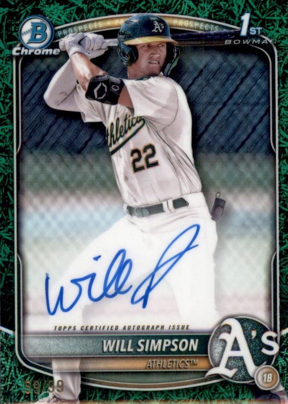 2025 Bowman Chrome Will Simpson True Green On-Card Auto /99 #CPA-WSI A’s