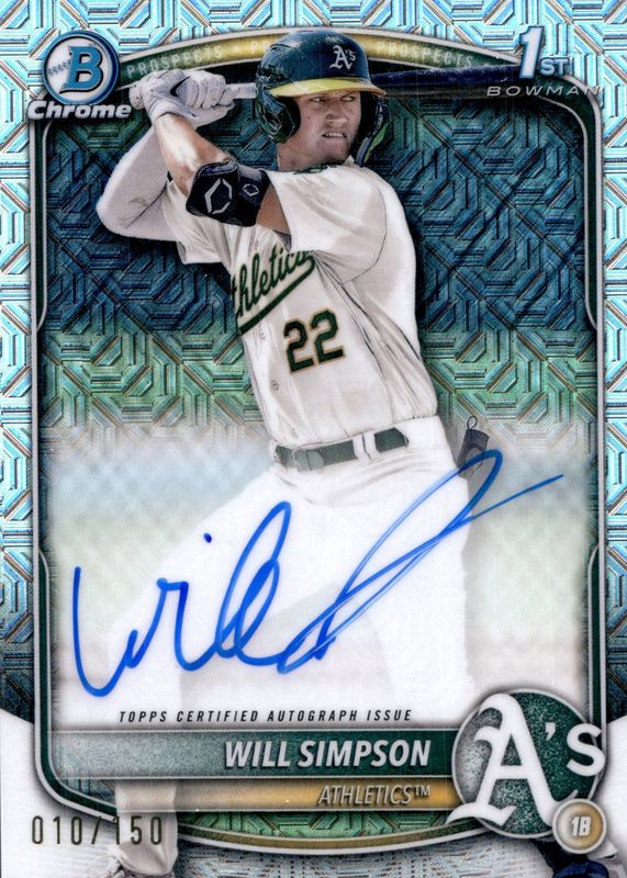 Will Simpson 2025 Bowman Chrome 1st HTA Auto /150 Athletics