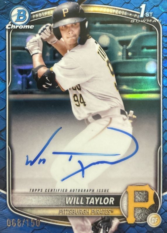 2025 Bowman Chrome Will Taylor Blue Reptilian Auto /150 1st Prospect Pirates