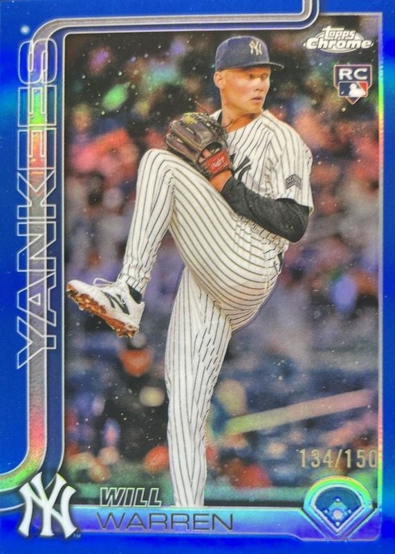 2025 Topps Chrome Will Warren RC Blue Refractor /150 Yankees #81