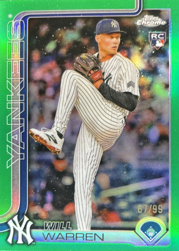 2025 Topps Chrome Will Warren RC Green Refractor /99 Yankees #81