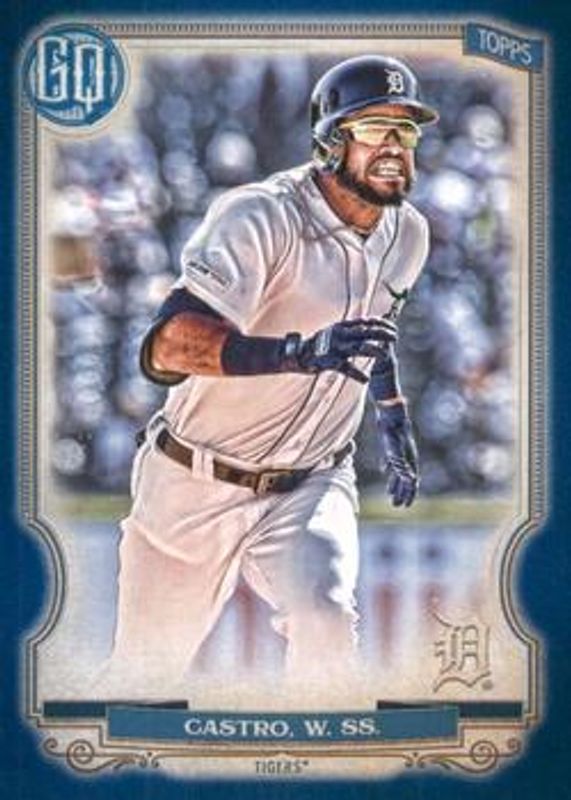 The Willi Castro 2020 Topps Gypsy Queen #257 Indigo /250 Rookie card is 1 of 13 Willi Castro's card variations in the 2020 Topps Gypsy Queen set being tracked by Sports Card Investor, including Base, Bazooka Back, GQ Logo Swap, Green, and Missing Nameplate.