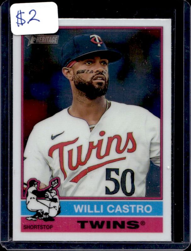 The Willi Castro 2025 Topps Heritage #73 Chrome card is 1 of 24 Willi Castro's card variations in the 2025 Topps Heritage set being tracked by Sports Card Investor, including Base, Black Border, Dark Blue Border, Dark Green Border, and Dark Yellow Border.