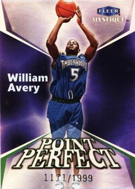 The William Avery 1999 Fleer Mystique #5PP Point Perfect /1999 Rookie card is 1 of 4 William Avery's card variations in the 1999 Fleer Mystique set being tracked by Sports Card Investor, including Base /2999, Masterpiece /1, and Fresh Ink.