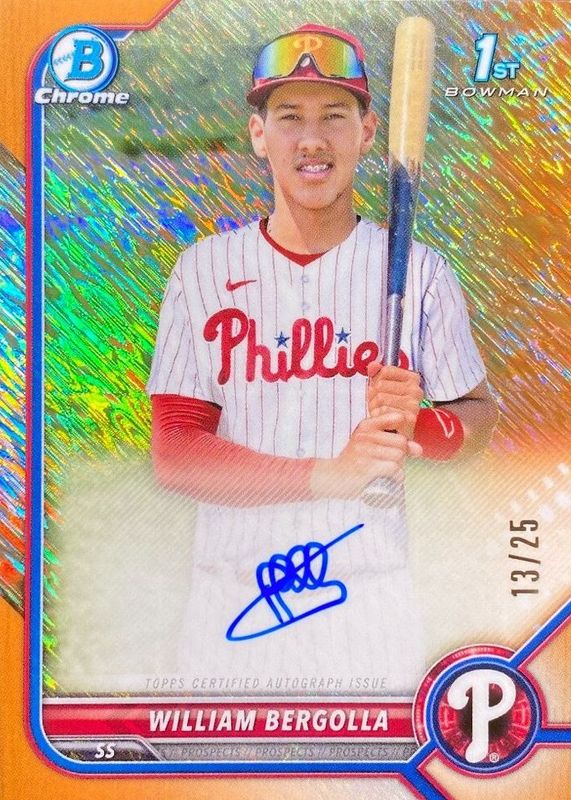 William Bergolla 2022 Bowman Chrome #CPA-WB Prospect Auto - Orange Shimmer Refractor /25 (1st) RAW Price Guide
