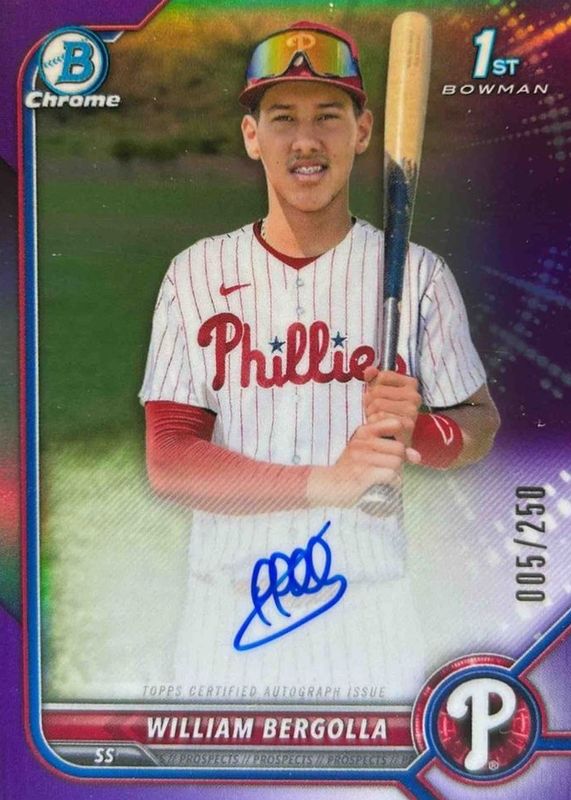 William Bergolla 2022 Bowman Chrome #CPA-WB Prospect Auto - Purple Refractor /250 (1st) RAW Price Guide