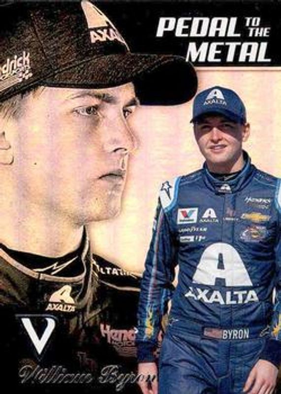 The William Byron 2018 Victory Lane NASCAR #50 Pedal to the Metal card is 1 of 40 William Byron's card variations in the 2018 Victory Lane NASCAR set being tracked by Sports Card Investor, including Base, Silver, Gold /99, Red /49, and Blue /25.