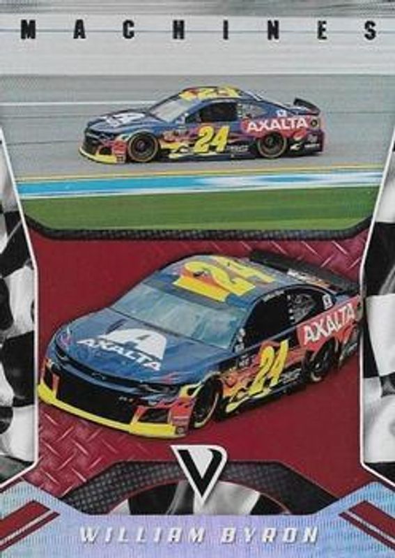 The William Byron 2019 Victory Lane NASCAR #M8 Machines card is 1 of 62 William Byron's card variations in the 2019 Victory Lane NASCAR set being tracked by Sports Card Investor, including Base, Gold /25, Black /1, Printing Plates Black /1, and Printing Plates Cyan /1.