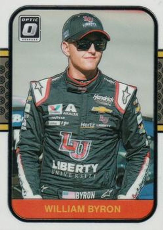The William Byron 2020 Donruss NASCAR #71 Optic card is 1 of 124 William Byron's card variations in the 2020 Donruss NASCAR set being tracked by Sports Card Investor, including #100 Base, #55 Base, #163 Base, #197 Base, and #55 Carolina Blue.