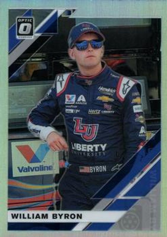 The William Byron 2020 Donruss NASCAR #26 Optic Holo card is 1 of 124 William Byron's card variations in the 2020 Donruss NASCAR set being tracked by Sports Card Investor, including #100 Base, #55 Base, #163 Base, #197 Base, and #55 Carolina Blue.