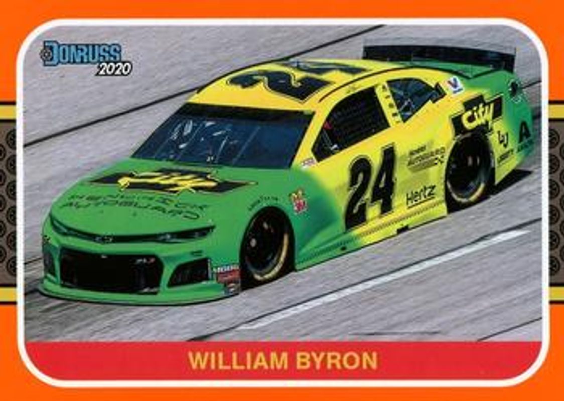 The William Byron 2020 Donruss NASCAR #197 Orange card is 1 of 124 William Byron's card variations in the 2020 Donruss NASCAR set being tracked by Sports Card Investor, including #100 Base, #55 Base, #163 Base, #197 Base, and #55 Carolina Blue.