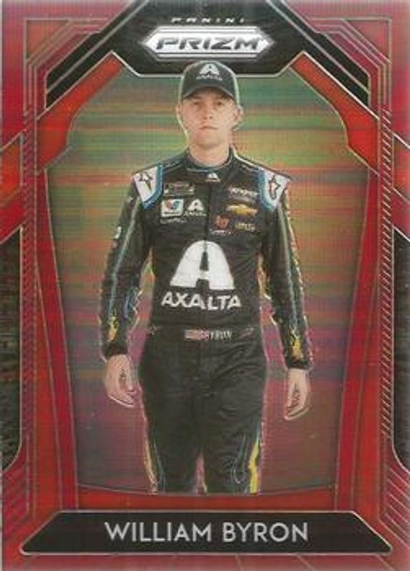 The William Byron 2020 Prizm NASCAR #25 Red card is 1 of 57 William Byron's card variations in the 2020 Prizm NASCAR set being tracked by Sports Card Investor, including Base, Blue, Blue & Carolina Blue Hyper, Green & Yellow Hyper, and Red & Blue Hyper.
