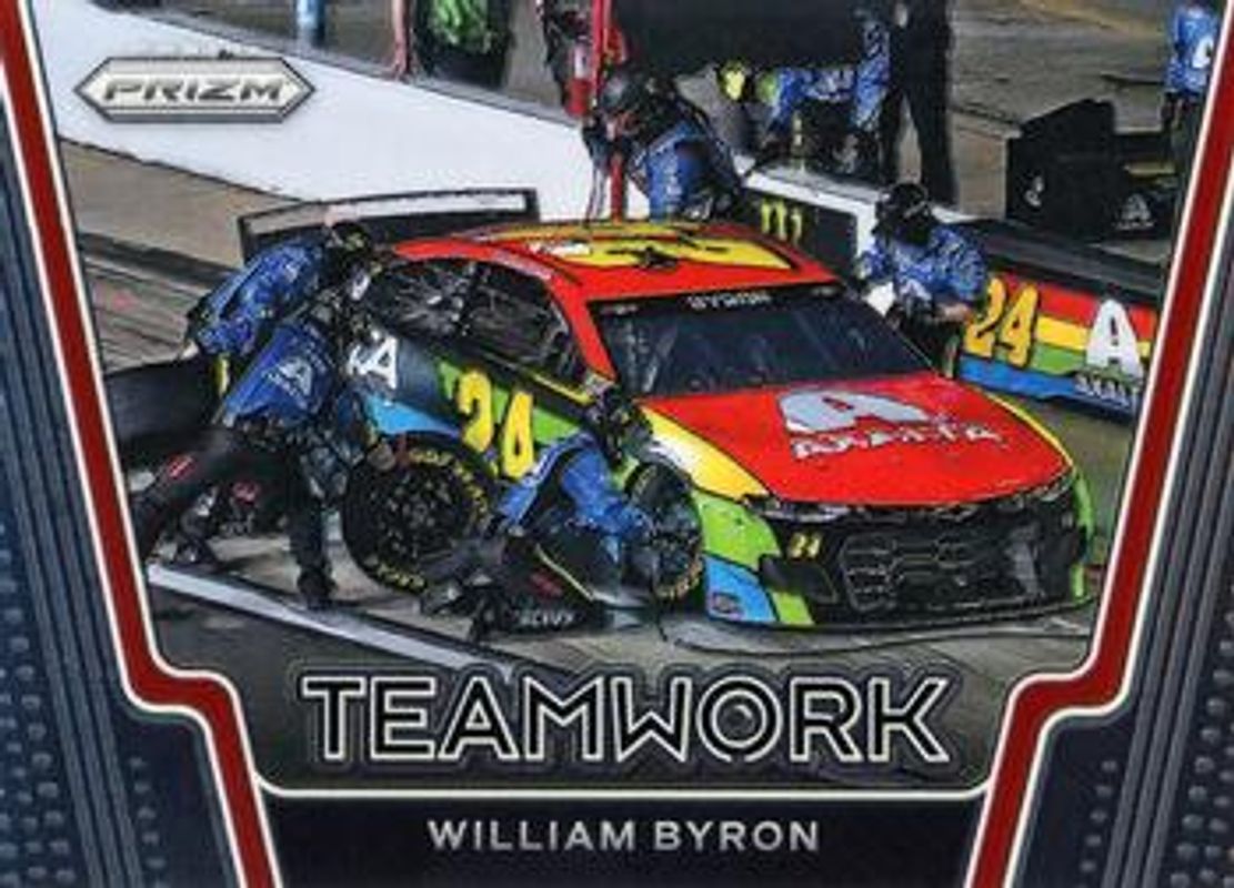 The William Byron 2021 Prizm NASCAR #T15 Teamwork card is 1 of 79 William Byron's card variations in the 2021 Prizm NASCAR set being tracked by Sports Card Investor, including #68 Base, #54 Base, #68 Blue, #54 Blue, and #68 Hyper Blue & Carolina Blue.