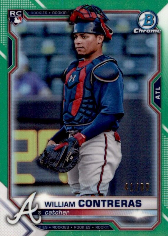 William Contreras 2021 Bowman Chrome Green Refractor RC /99 #38 Atlanta Braves