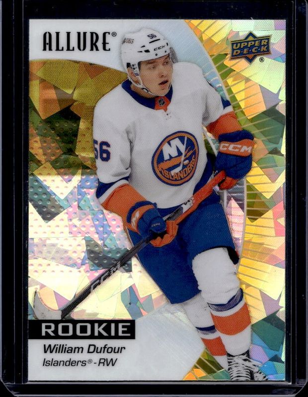 The William Dufour 2023 Upper Deck Allure #137 Yellow Taxi Rookie card is 1 of 32 William Dufour's card variations in the 2023 Upper Deck Allure set being tracked by Sports Card Investor, including Base, Black Rainbow, Confetti, Hypnosis, and Orange Slice.
