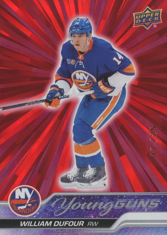 William Dufour 2023-24 Upper Deck Series 1 Young Guns Outburst red /25 #206 NYI