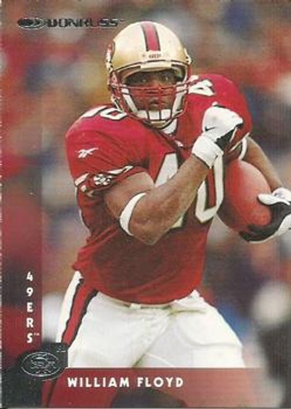 The William Floyd 1997 Donruss #52 Base card is 1 of 3 William Floyd's card variations in the 1997 Donruss set being tracked by Sports Card Investor, including Press Proof Gold Die-Cut, and Press Proof Silver.