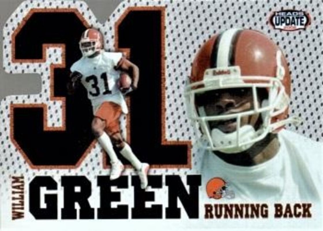 The William Green 2002 Pacific Heads Update #4 Big Numbers Rookie card is 1 of 4 William Green's card variations in the 2002 Pacific Heads Update set being tracked by Sports Card Investor, including Base, Blue, and Red.