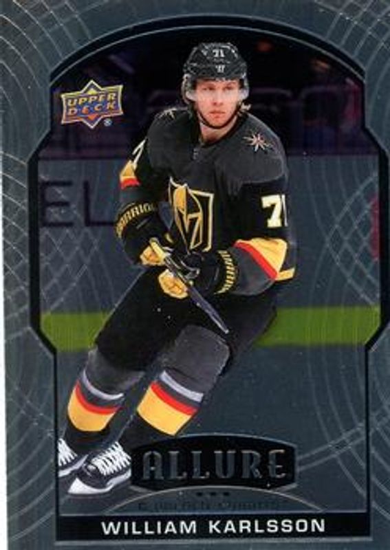 The William Karlsson 2020 Upper Deck Allure #24 Base card is 1 of 31 William Karlsson's card variations in the 2020 Upper Deck Allure set being tracked by Sports Card Investor, including 2005 Shield, Black Rainbow, Blue China, Leopard, and Magenta.